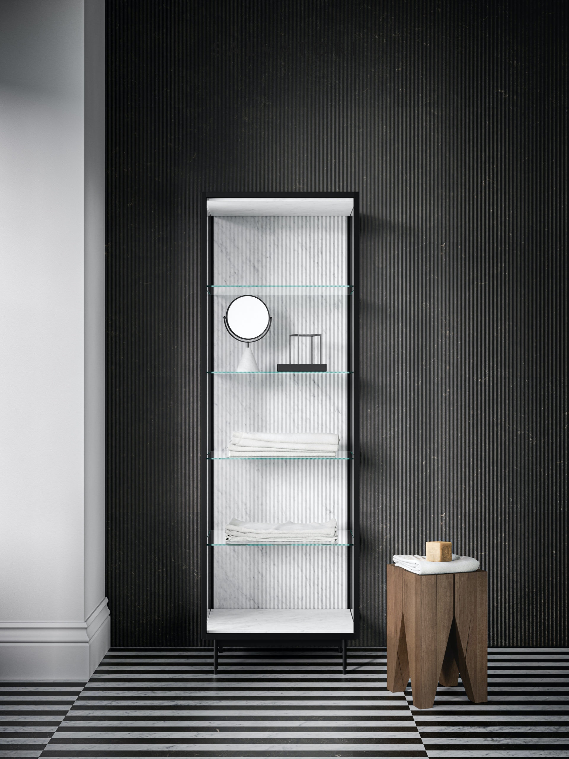 The Fontane Bianche Collection was created as a set for the bathroom, featuring trays, soap dishes, toothbrush holders, mirrors and towel rings, which together spotlight the complementary materials’ elegant nature. Hand finished in Tuscany, the collection is available in Bianco Carrara and Pietra d’Avola.