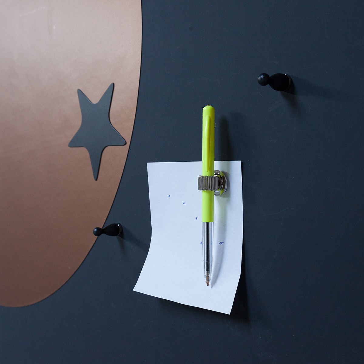 No more chances of misplacing pens again... This practical magnetic pen holder sticks on ferrous surfaces such as magnetic wallpaper or a fridge.