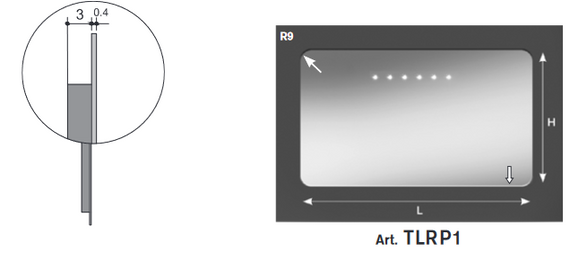 5mm clear mirrors with rounded edge and rounded corners with and w/out led lighting , with 220/12 v transformer and touch-light switch, complete with wall mount.
