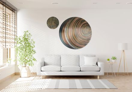 Iron disc with handmade mixed burnished colors with irregular lines. Colorful but sober at the same time, thanks to its warm and natural shades.