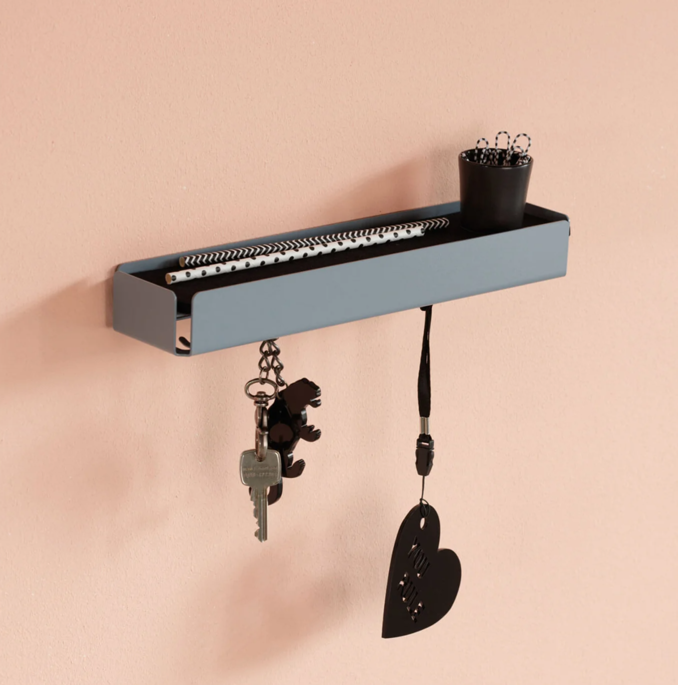 The best place for keys is a lock. The second best place is the key box. The 25 hooks bring order, enough for each key to find its right place. On the top, covered with felt, you can put what ever you like.