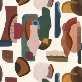 Created by our design team, inspired by contemporary muralists, MACHAYA takes an abstract look at frescos. Handpainted on the paper by our stylists, the organic shapes are then recreated using digital printing on a linen?