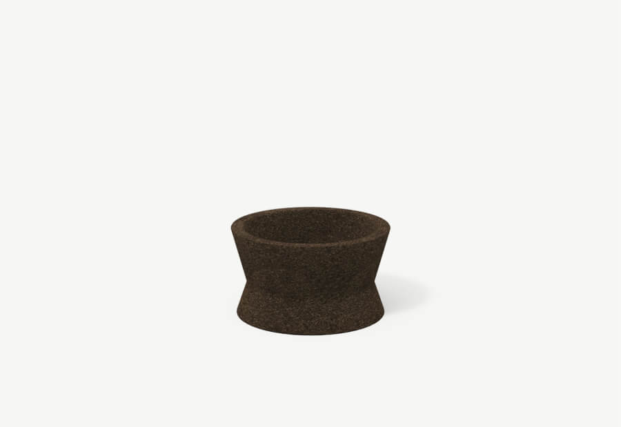 Both planters as a design tribute to an entirelynatural and ecologically sustainable material. Made inhigh-quality expanded black cork, they are distinguishedby balanced volumes and attentively clean lines.