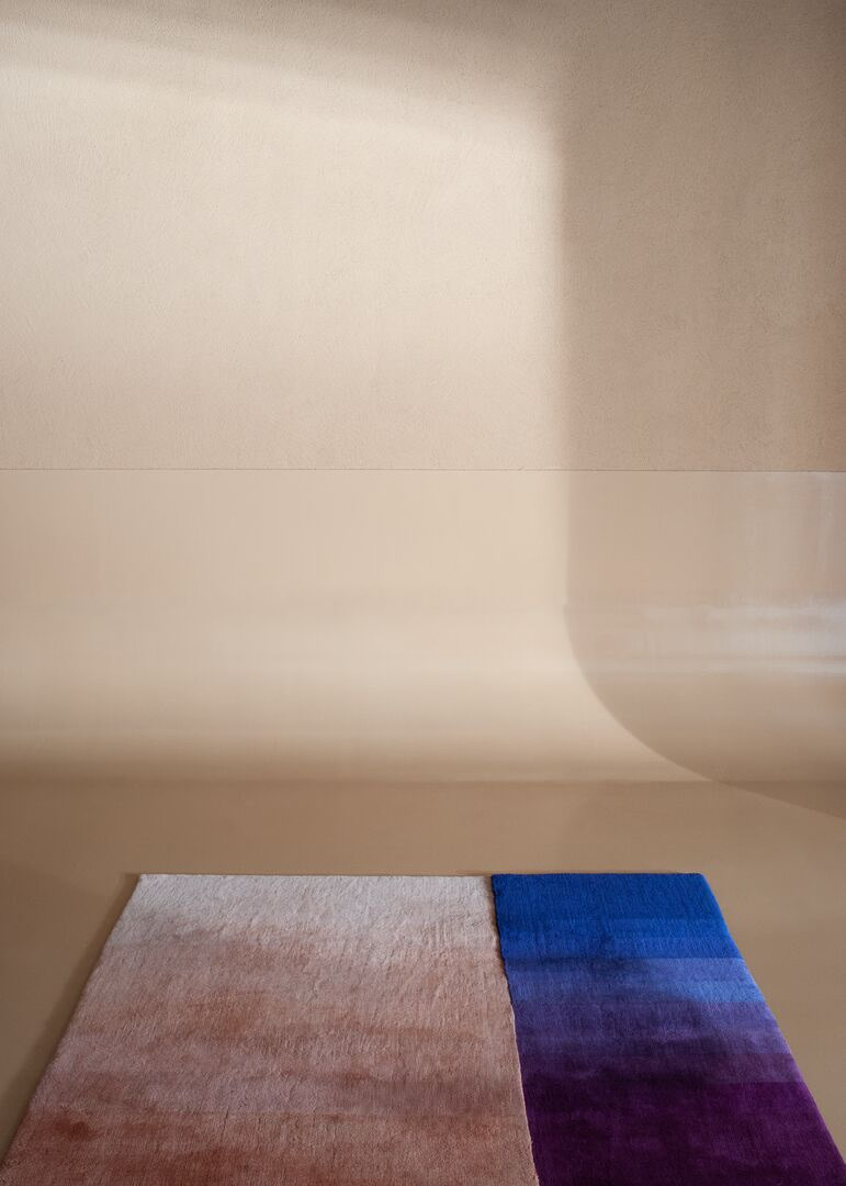 Inspired by the Arabic word Nur, meaning “light,” the Noor rug introduces a refined play of transparency and luminous nuances into interiors, evoking the delicate eect of neon in a decorative key.