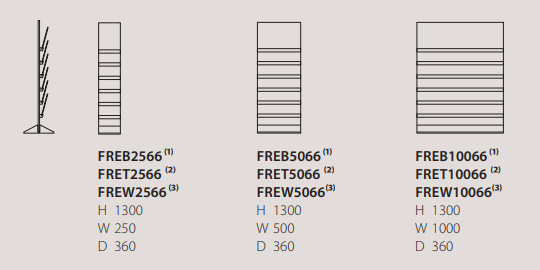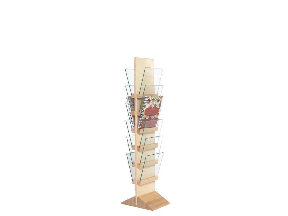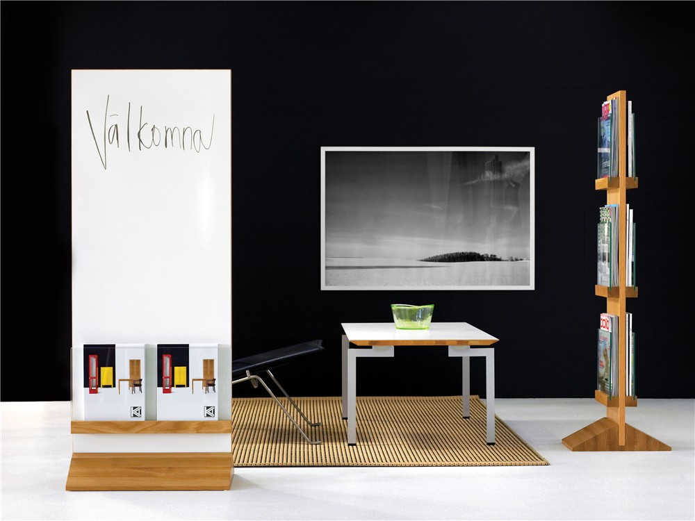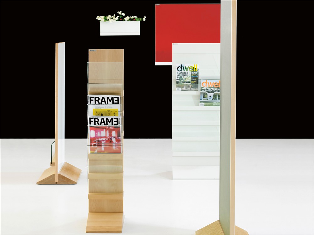 2. As magazine shelf with straight or slope ledges on both sides of back. 3. A combination of straight or sloping ledges and back in wood, Bulletin Board 2204 or magnetic whiteboard included magnets. Tempered clear glass in height 150 (=A5) and 230 (=A4) mm as standard.
