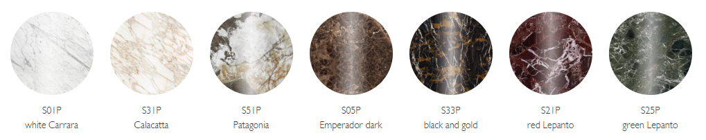 The arms assemble six spheres with details that can be in brushed brass, brushed nickel, brushed black nickel. For a more precious appearance, the circular base is also available in marble.